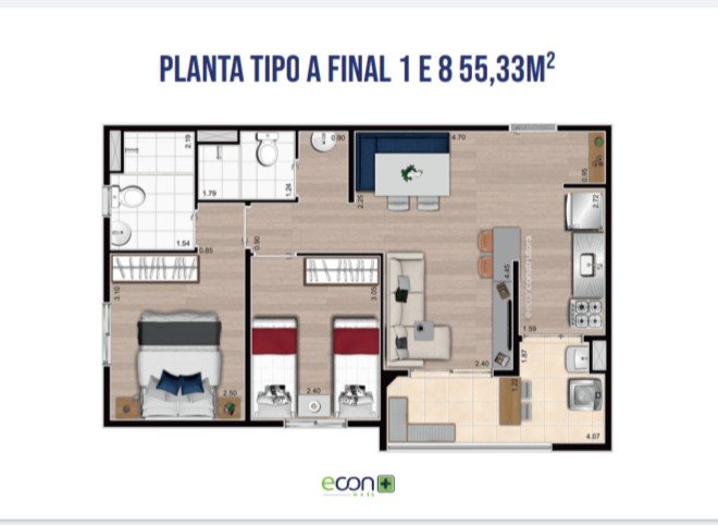 - Área Privativa: 55 m²
