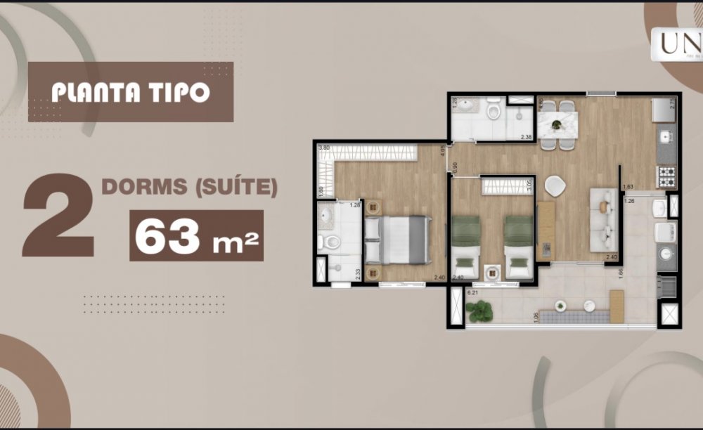 - Área Privativa: 63 m²