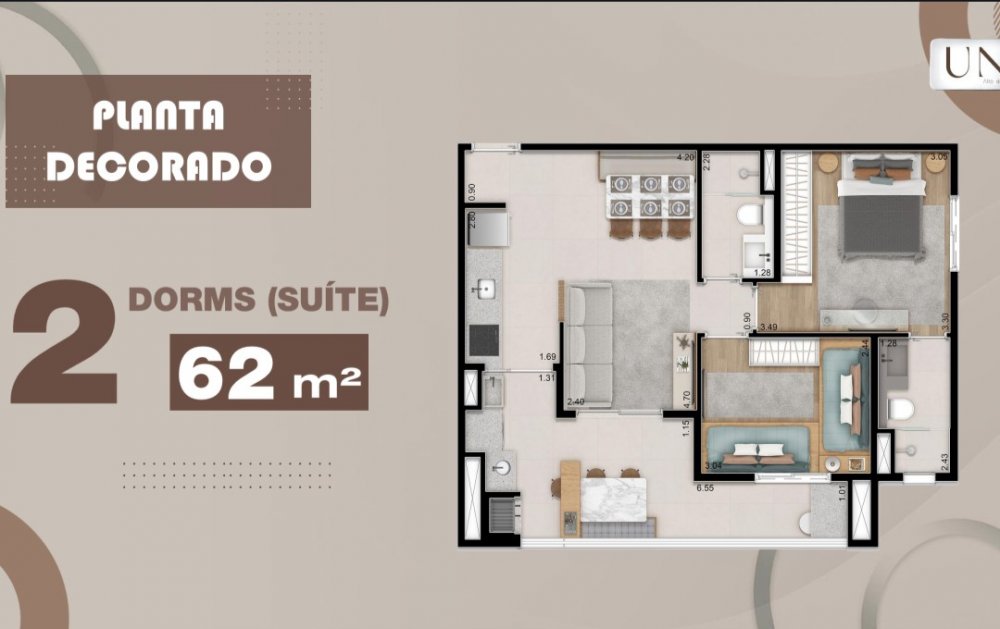 2 Dorms (63 m²) com suíte, terraço gourmet com churrasqueira, vaga de garagem e lazer completo.