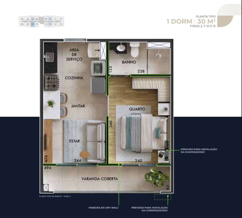 - Área Privativa: 30 m²