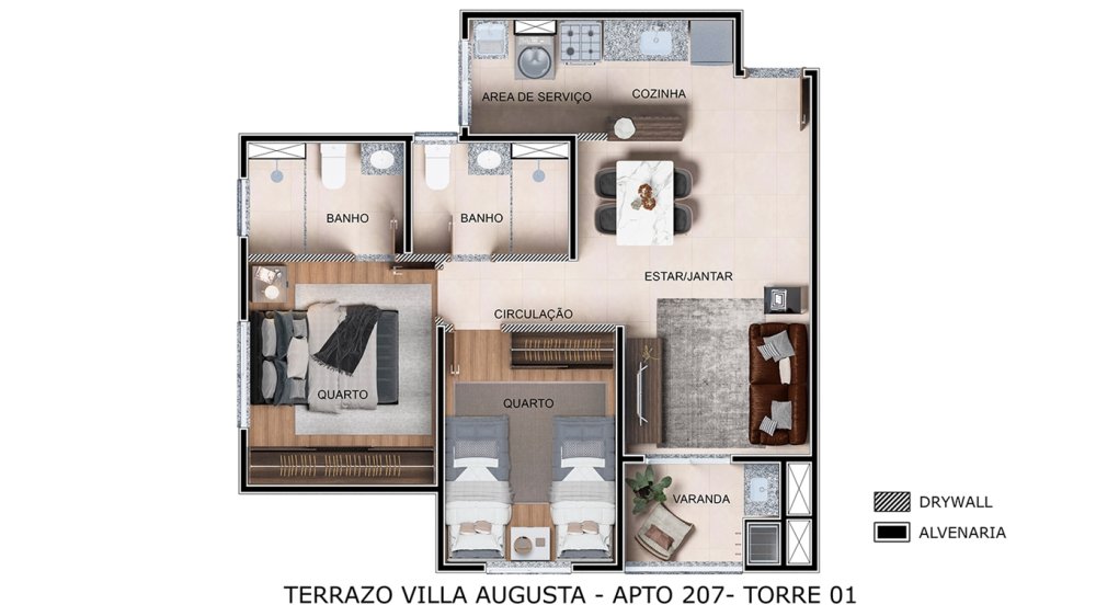 Com suíte, sacada com churrasqueira a carvão e vaga de garagem