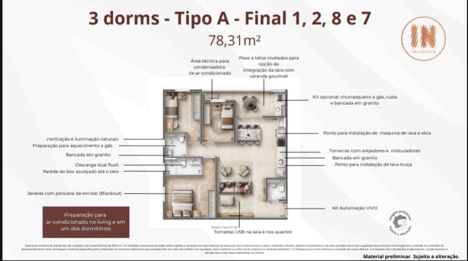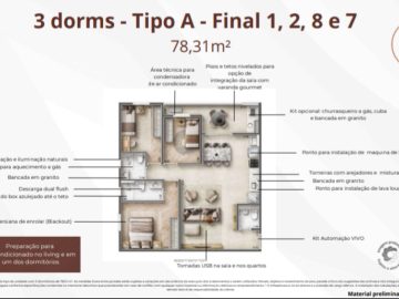 Apartamentos modernos e sofisticados, com 3 dormitórios (1 suíte), terraço gourmet, vaga de garagem e lazer completo para toda a família.