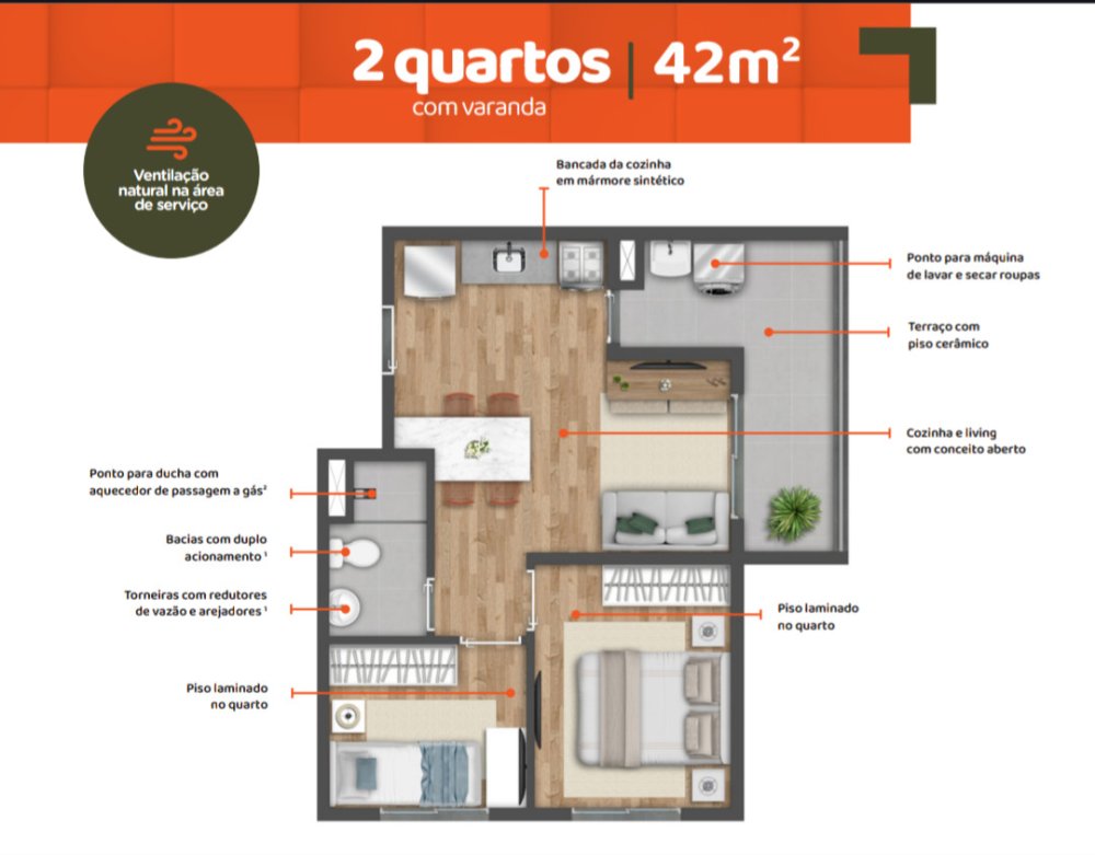 - Área Privativa: 42 m²